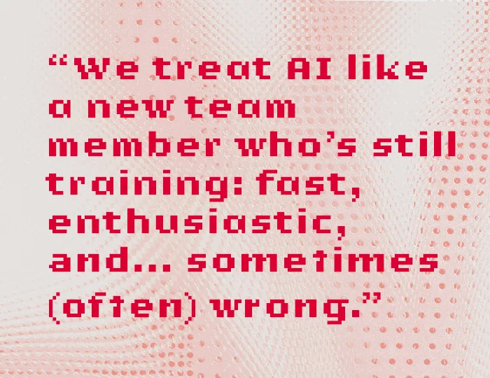We treat AI like a new team member who’s still training: fast, enthusiastic, and… sometimes (often) wrong.